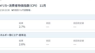 嫌儲 アメリカ・消費者物価指数(CPI)11月 前年比 予想3.1%結果2.7%、コア・前年比 予想3.0%結果2.6%
