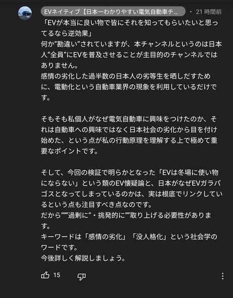EVユーザー「私はEVが好きなのではなく日本人の劣等生を晒す為にEVに乗っている」