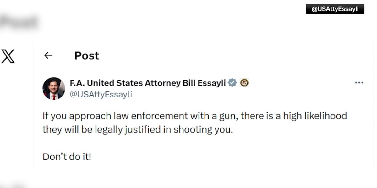 エッセイリ氏はNRAの批判に対して自身のSNSで反論し、「私のコメントは、法執行官に対して先制的に武装して近づき、降伏・武装解除を拒む者に関するものであり、合法的な銃保持者全般を撃つという意味ではない」と説明した。 また、「武装して積極的に近づくべきではない」とも述べた。