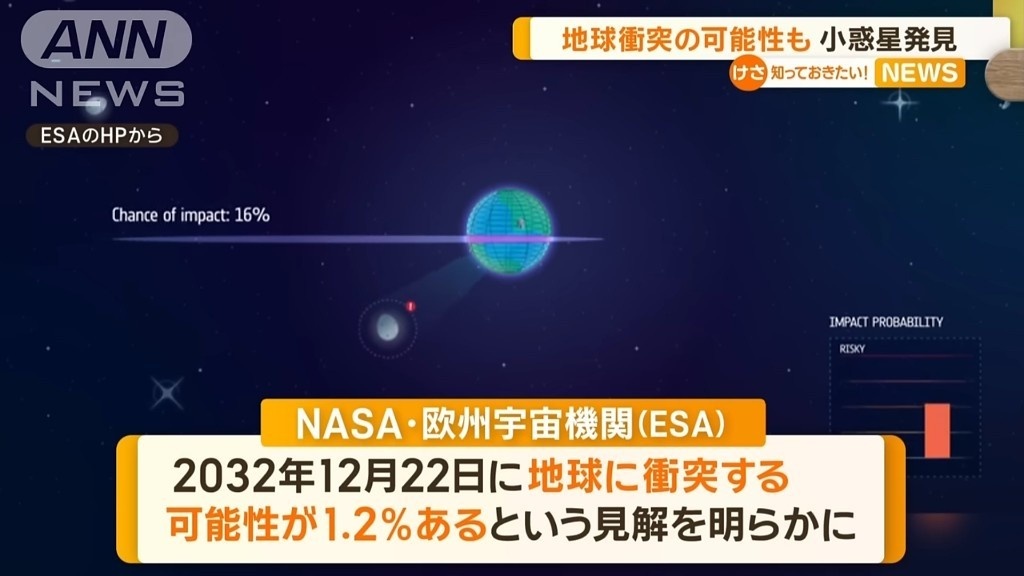 NASA「小惑星が地球に衝突するかもしれません。確率は1.2%です」