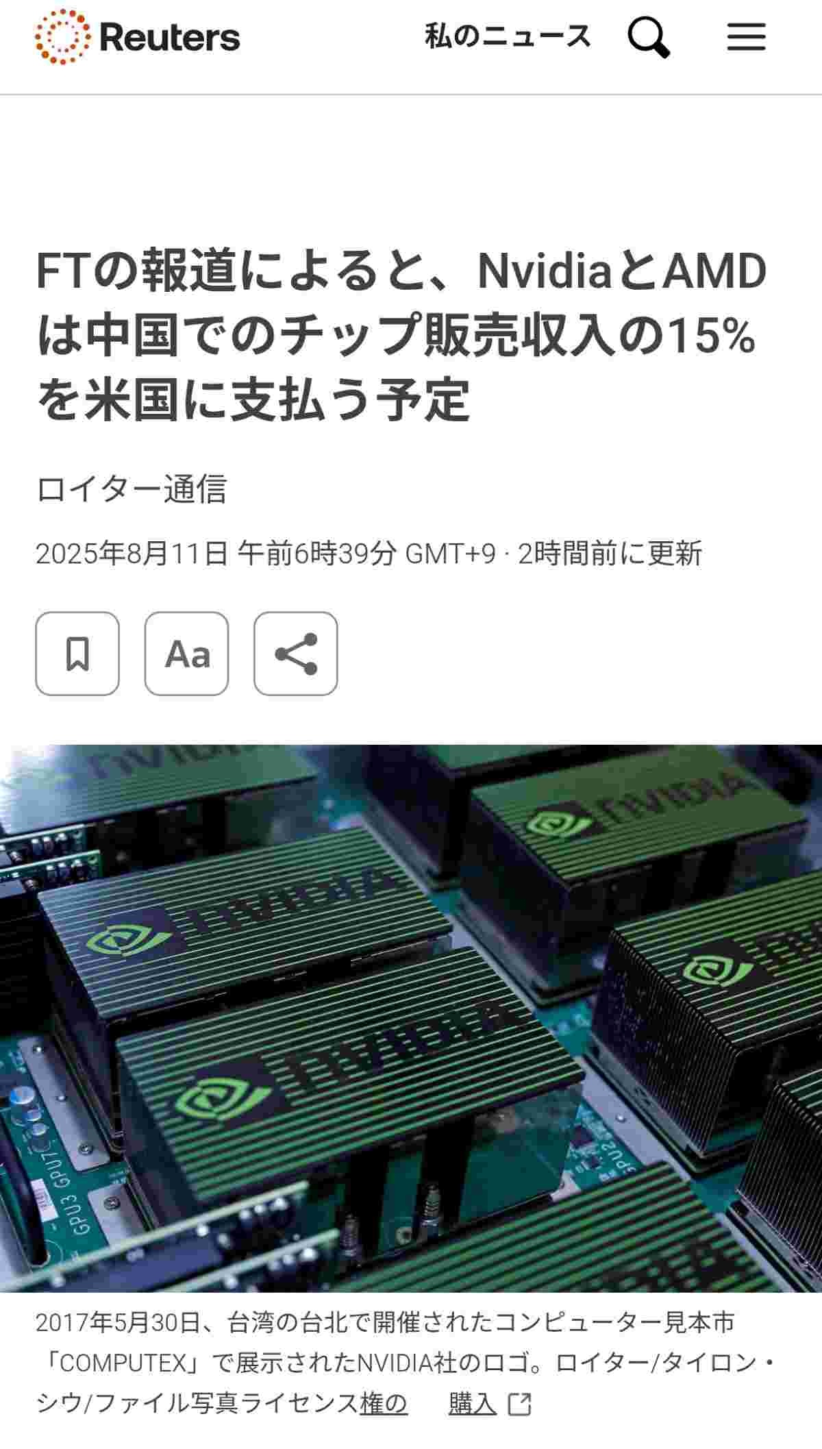 nVidiaとアムド、米国関税免除のために日本と中国での売上の15%を米国政府へ上納へ。トランプ「日中が関税を負担する」