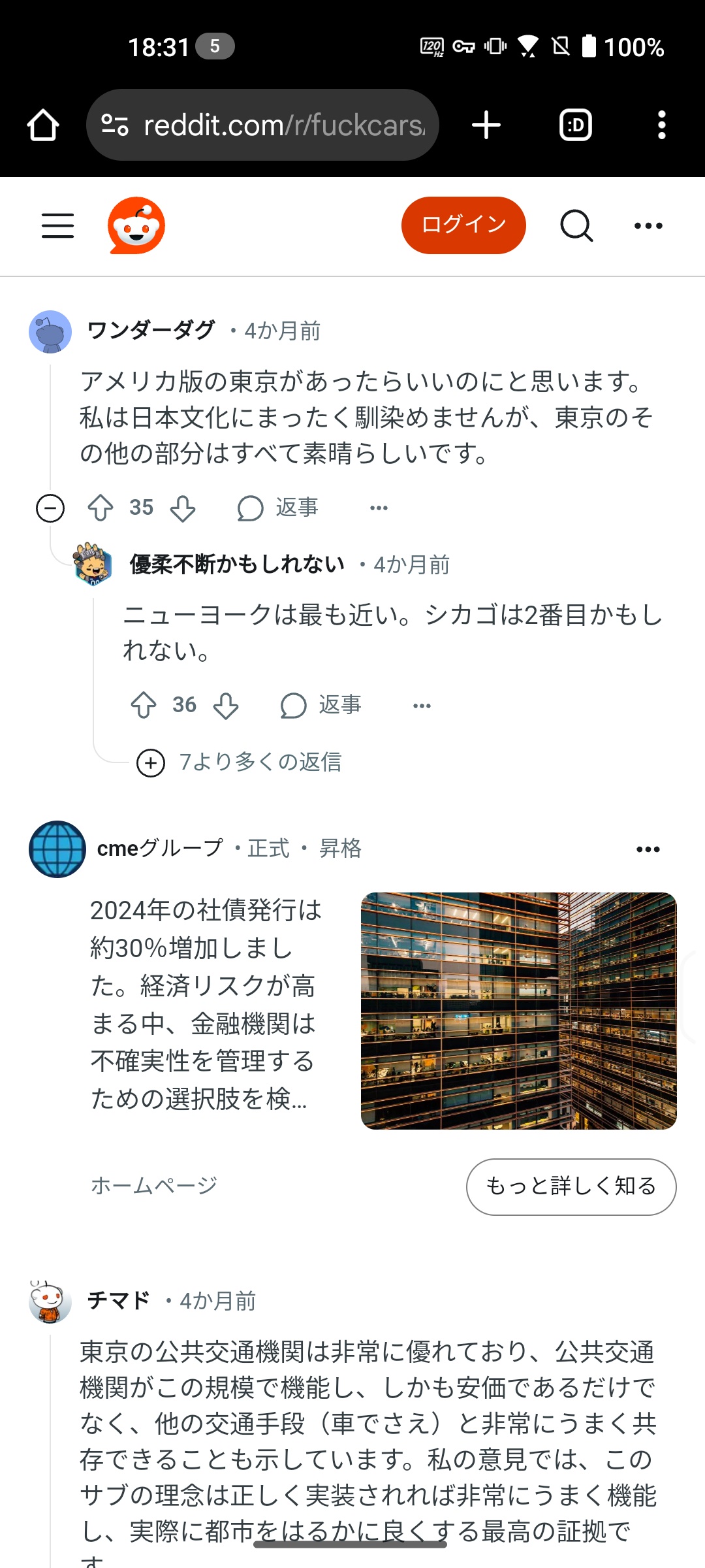 Redditの『Fuck Cars』という車アンチ専門板にて東京が称賛される 「人口の割に車が少なく理想的な都市」石破、😲