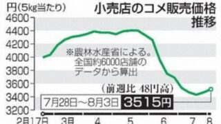 嫌儲 コメの値段が限界究極突破www高市早苗が推し進めた減反の結果がこの結果がこれですかwww