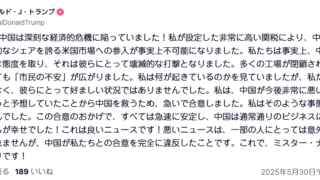 嫌儲 トランプ「私は中国経済を助けてやったが連中は完全に合意を破った! もうミスターナイスガイは終わりだ、信頼ゼロ!