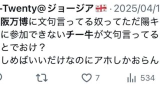嫌儲 有識者「万博を叩いてる奴って陽キャを陰で叩いてる陰キャのチー牛そのものでしょ」→2万いーね