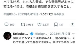 エッヂ 【同意】本田圭佑「プロ野球が盛り上がりに欠けるのは昇降格制度がないから。」→いいね2.5万賛同の嵐