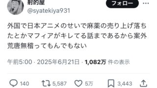 嫌儲 海外マフィア「日本アニメが流行ってるせいでドラッグの売上が激減した!ファック!!!」 5万いいね