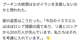 なんG プーチン「イランには悪いけど、もう支援できない。イスラエルにはロシア系住民が多いんだ」