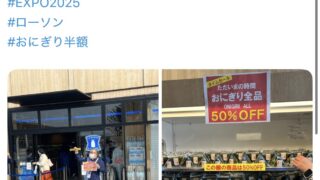 嫌儲 【乞食速報】万博ローソン、本日もおにぎり半額セール開催中www