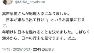 嫌儲 左翼「高一が首相になったから日本から出ていく」ナザレンコ「素晴らしい!日本嫌いな左翼がいると、本人も辛いし社会も迷惑」