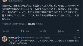 なんG 外国人「鬼滅の刃の女キャラは何であんなにおぱーいをアピールしてるの?」