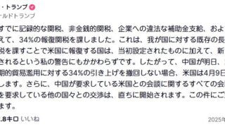 エッヂ トランプ大統領「中国に追加で50%の関税、合計104%の関税をかけるわ😤」www