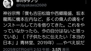 嫌儲 【安倍悲報】参政党神谷「僕も吉田松陰や西郷隆盛など、多くの偉人の魂をインストールして力を借りてきた🤩🏺」