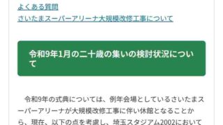 嫌儲 「さいたまスーパーアリーナ」が長期改修で1年半の休館に→来年のさいたま市成人式、絶望の真冬「埼玉スタジアム」開催へ