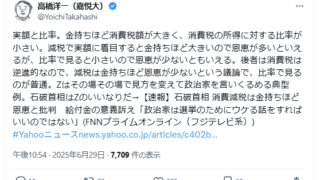 嫌儲 高橋洋一「消費税減税は実額では金持ちに恩恵大、比率では低所得者に恩恵大。政策議論では、比率で判断。石破はZの言いなり