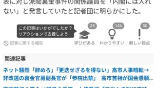 嫌儲 裏金議員起用、反対7割超。賛成しているのは謎の集団10%だけだった…