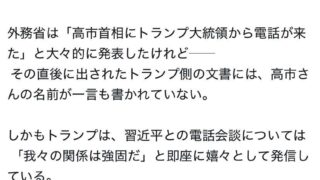 嫌儲 WSJなど米メディア一斉に高市トランプとの電話会談は全て台湾問題に振り分けられ中国をこれ以上刺激するなという内容だったと報じられる