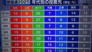 嫌儲 【画像】都議選の世代別投票先が判明、80代以上は認知症の傾向にあることが判明