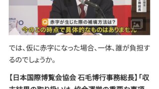 嫌儲 【万博】赤字になった場合は? 万博協会「ならないようにする」補填方法は? 協会「考えていません」