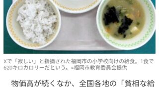 なんG 日本の給食の貧しさ、限界突破する😭