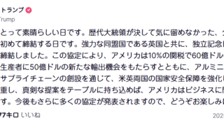 嫌儲 トランプ「英国との歴史的貿易協定、10%の関税で60億ドルの外貨収入と50億ドルの輸出でアメリカの農家と安全保障を強化!」