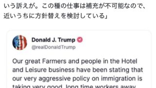 嫌儲 トランプ大統領「移民を片っ端から捕まえてったら農業従事者がいなくなった」