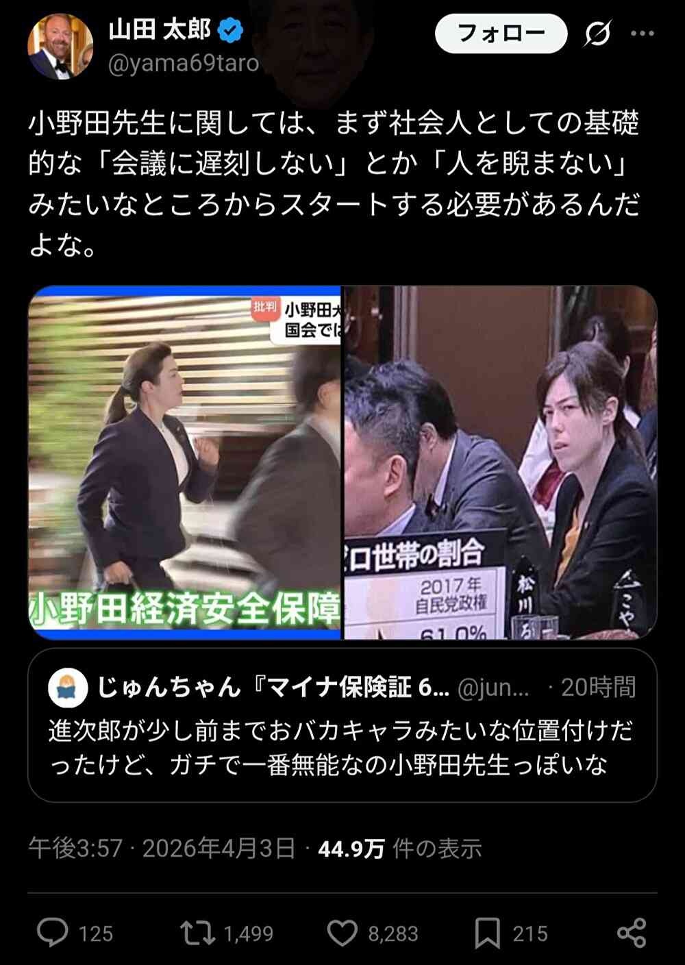 小野田SNS担当大臣だからな - 23 : 2026/04/04(土) 11:32:11.02 ID:mqhRqc9P00404